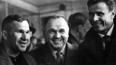 На одной из карикатур того времени Алексей Хомич стоит в воротах, защищаемых стенкой. Но стенкой не из игроков своей команды, а из кирпичей, бережно укладываемых защитником Михаилом Семичастным. Сейчас мы можем только догадываться, кого именно художник-карикатурист изображал в виде кирпичей: Станкевича, Радикорского или Леонида Соловьёва? Но суть он донёс до болельщиков верно – один вратарь в поле не воин. Поэтому в этой части мы познакомимся с «лучшими друзьями» Хомича на футбольном поле – защитниками московского «Динамо».
