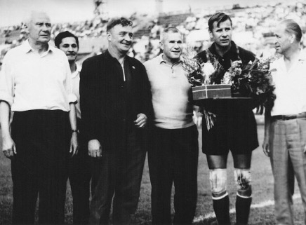 На фото: Ф.Чулков, А.Квасников, А.Хомич, Л.Яшин, Е.Фокин. 1969г. Трёхсотый матч Льва Яшина в чемпионатах СССР.