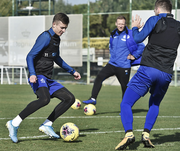 Она уже совершенно традиционно для «Динамо» на этих зимних «ВТБ Тренировочных сборах» была посвящена прохождению станций от Пепе. В своём вчерашнем материале мы обращали внимание на то, что характер утреннего занятия изменился – при высокой нагрузке станции стали более игровыми. Воскресная тренировка это наблюдение полностью подтвердила. На этот раз станций наметили 11 и каким только разнообразием они не были наполнены – тут и контроль мяча, и попытка отбора, и удары после дриблинга, и теннисбол с необходимостью обязательного запрыгивания на резиновый купол-полусферу (так называемая bosu - both side use). По итогам прохождения первого круга Пепе остался недоволен скоростью перемещений между станциями.