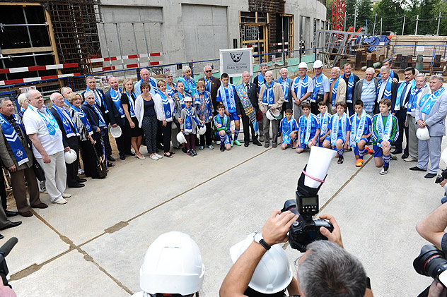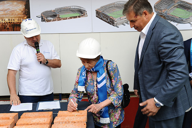 Перед официальной частью состоялось торжественное возложение цветов к памятнику Льву Яшину в Петровском парке, после чего делегация гостей и участников мероприятия направилась на стройплощадку стадиона, где и должно было состояться главное событие.