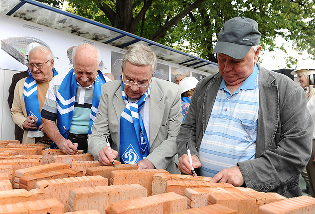 Под занавес официальной части мероприятия состоялось торжественное подписание кирпичей ветеранами «Динамо» в разных видах спорта. Эти кирпичи лягут в основание стены нового спортивного комплекса.