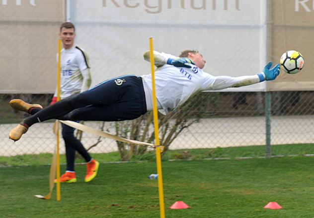 Непростым получилось занятие у вратарей. Во-первых, оно отличалось повышенной интенсивностью и шло без пауз – без передышки после отработки своих упражнений голкиперы распределились по командам для двусторонки. А, во-вторых, вратарей стало меньше. Практически сразу после матча с «Высочиной» Игорь Лещук вместе с Никитой Калугиным уехали в аэропорт, откуда вылетели в Испанию. Там они поступили в распоряжение молодёжной сборной России и её главного тренера Евгения Бушманова, в расписании которых два контрольных матча – 6 февраля с венгерским «Видеотоном», а 8-го числа с мюнхенской «Баварией-2» U-23. Вернутся в стан бело-голубых Лещук и Калугин уже в начале третьего турецкого сбора команды.