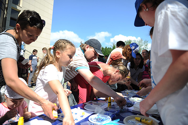 В дополнение к красочному футбольному фестивалю для юных игроков и их родителей был организован интересный мастер-класс по изготовлению сувениров с символикой ФК «Динамо-Москва». Все желающие могли наложить на трафарет не только эмблему любимого клуба, а также горный хрусталь и лазурит. Изготовление подушек и подставок вкупе с нанесением символики «Динамо» на футболки приводили в восторг малышей, помогая проигравшим поскорее забыть досадные поражения.