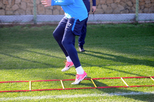Антон с интересом смотрит за тем, как партнёры эмоционально работают в квадратах, отрабатывают фланговые подачи или увлечённо бьют по воротам. Но вот звучит команда Матии, и Терехов сосредоточенно выполняет очередное упражнение. Которых великое множество.