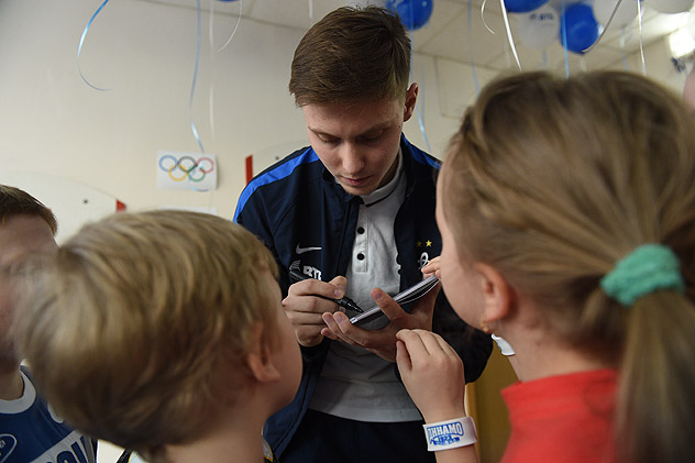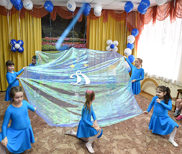 Еще до начала официальной программы было заметно, какой нешуточный ажиотаж у воспитанников детского сада вызвал приезд динамовцев. Дети не скрывали своих улыбок, несмотря на то, что все самое позитивное и увлекательное ждало их впереди. Для начала – знакомство с будущими кумирами, чье появление в уютном музыкальном зале, украшенном по случаю бело-голубыми шариками, было встречено искренними аплодисментами. Ребятишки поочередно перечислили все необходимые качества, которыми должен быть наделен, по их мнению, современный футболист, - а именно ответственность, сила, ловкость, мужество и бесстрашие на футбольном поле во имя победы своей команды. В музыкальном зале прошли футбольная разминка, а также интересные викторины и веселые конкурсы на знание нюансов футбола. Малыши не терялись во время вопросов ведущего, а, выйдя на сцену, смогли продемонстрировать не только замечательную танцевальную подготовку, но и исполнить несколько футбольных частушек и музыкальных композиций, одна из которых оказалась на мотив известного «Спортивного марша».
