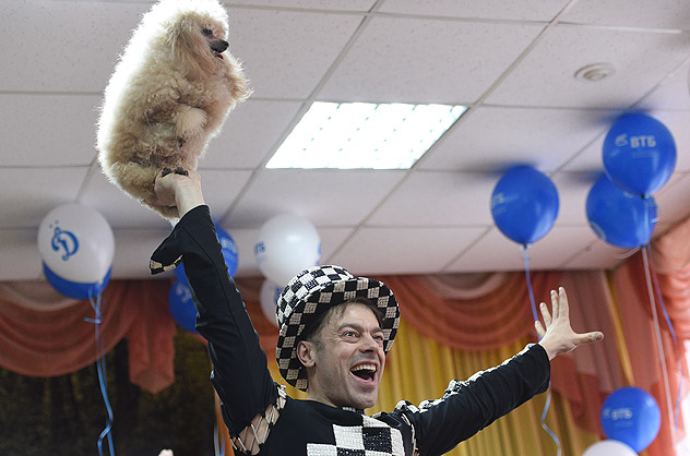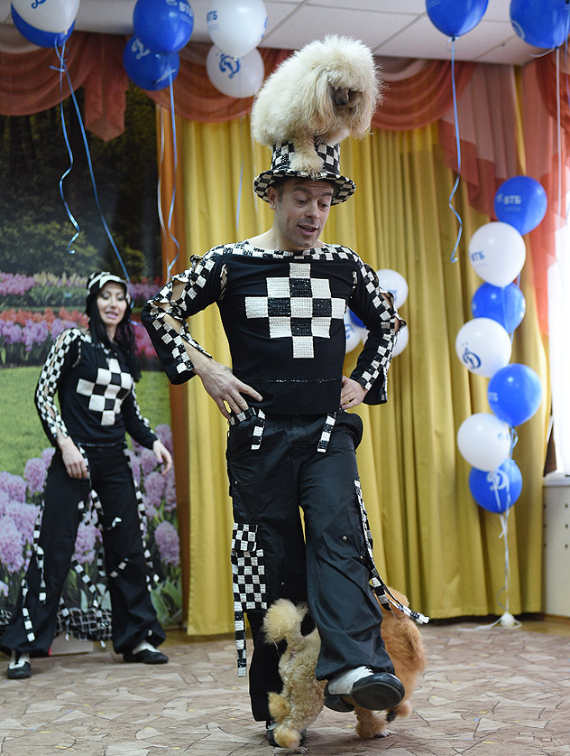 Восхищение вызвало панно с буквой «Д», которое воспитанники детского сада № 2097 специально подготовили к приезду гостей из «Динамо». Необычное представление с участием дрессированных собак, венчавшее первую часть праздничного вечера, привело в восторг малышей. Дети не могли оторвать глаз от сцены, наблюдая за совместными трюками пуделей и их дрессировщиков.