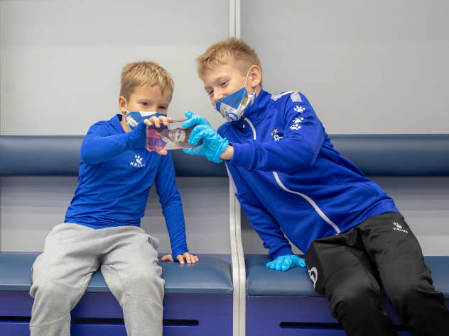 Маршрут знакомства с динамовским домом пролегал через зону разминки хоккеистов, которая во время концертов магическим образом превращалась в площадку для фанатов того или иного исполнителя или музыкальной группы. Особое оживление у детей вызвало посещение сразу двух раздевалок – хоккейного «Динамо» и футбольного, в которых ребята с удовольствием провели время и даже сделали совместное победное фото по аналогии с тем, которое регулярно выкладывается в социальных сетях клуба после удачных матчей. Подольше экскурсанты остановились в раздевалке футбольного «Динамо», которая на время международных матчей превратилась в «святая святых» сборной России. Между этими двумя объектами воспитанники Академии и их родители побывали в самом ледовом дворце. Хоккейная арена поразила своими масштабами и удобным расположением трибун.