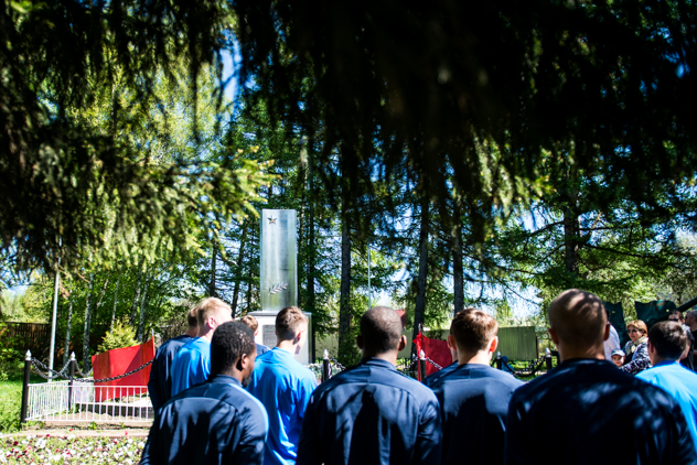 Команда вместе с тренерским штабом собралась в холле базы ВТБ УТБ «Новогорск-Динамо» в 11:15 и, совершив короткую поездку на автобусе, добралась до обелиска в Куркино. Возложив цветы, динамовцы в тишине почтили память тех, кто отдал свои жизни за нашу свободу и мирное небо над головой.