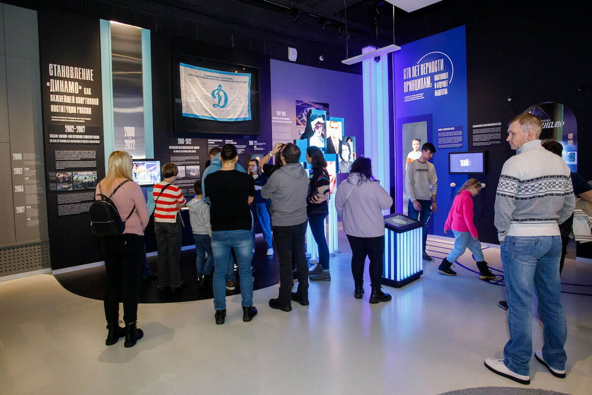 Участники обеих экскурсий прошли по всем залам интерактивного музея, где узнали много нового об истории развития общества «Динамо», футбольного клуба и других видов спорта.