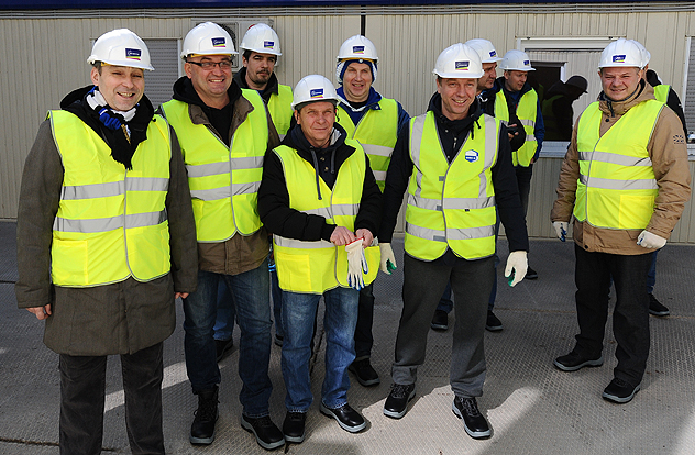 По окончании инструктажа присутствующие получили средства индивидуальной защиты – каски, жилетки и спецобувь, необходимые для работы на строящемся объекте, что, несомненно, добавило колорита происходящему.