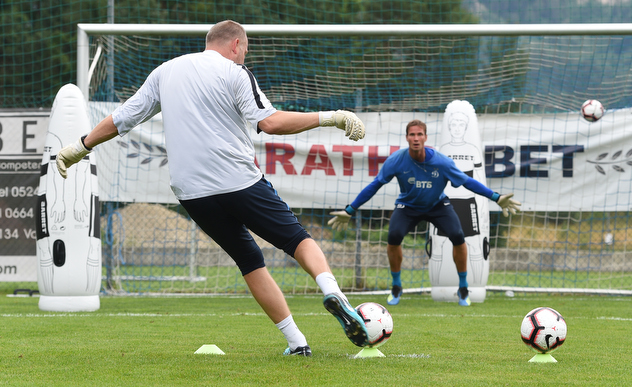 Продолжилось занятие «квадратами», правила в которых регулярно менялись: игра в одно касание, в обязательные два, в не менее, чем в два… А завершилась тренировка ударами. Как по статичному мячу, так и по летящему с фланга. Как это заведено в «Динамо», «ударные» упражнения проходят на спор между бьющими и теми, кому хотят забить. Вкус победы и поражения познали обе стороны. Каким будет послевкусие игры с «Яблонецем», второй контрольной на сборе в Австрии, узнаем сегодня вечером.