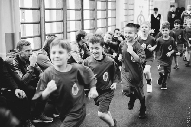 Затем одно из любимых и эмоциональных занятий – эстафеты, причем в каждую из команд отправляется кто-то из футболистов. Далее мастер-класс по обращению с мячом, а следом мальчишки демонстрируют, чему они уже научились ранее. И самый зрелищный номер – удары в падении через себя. Получается у школьников здорово, динамовцы каждого поддерживают одобрительными возгласами и аплодисментами.