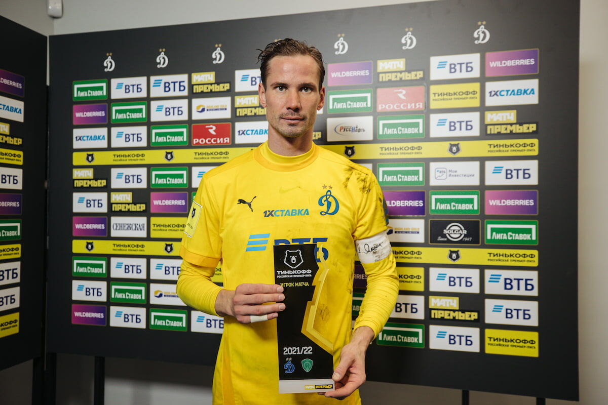 Вратарь «Динамо» Антон Шунин был признан лучшим игроком встречи экспертами телеканала «Матч Премьер».