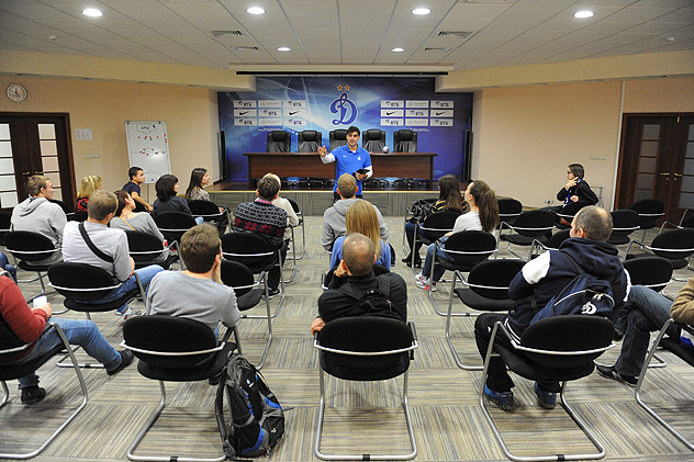 Вскоре настал черед импровизированной пресс-конференции, состоявшейся там же, в ходе которой наибольшую активность проявили дети, занявшие места за столом и получившие отличный шанс почувствовать себя настоящими участниками околофутбольного действа. Фантазии не было предела. Ребята представлялись игроками «Динамо», тренерами, спонсорами, а самые находчивые воображали себя директором гостиничного комплекса или садовником «ВТБ Учебно-тренировочной базы «Новогорск-Динамо». По окончании культурной части экскурсионная группа отправилась к футбольному полю, где гости увидели, как готовятся динамовцы к очередному матчу. Приятным сюрпризом для сотрудников ВТБ и членов их семей, среди которых оказалось немалое число поклонников «Динамо», стала встреча со своими любимцами по окончании тренировки. Динамовские игроки расписывались на именных карточках и постерах, попутно принимая участие в фотосессии.